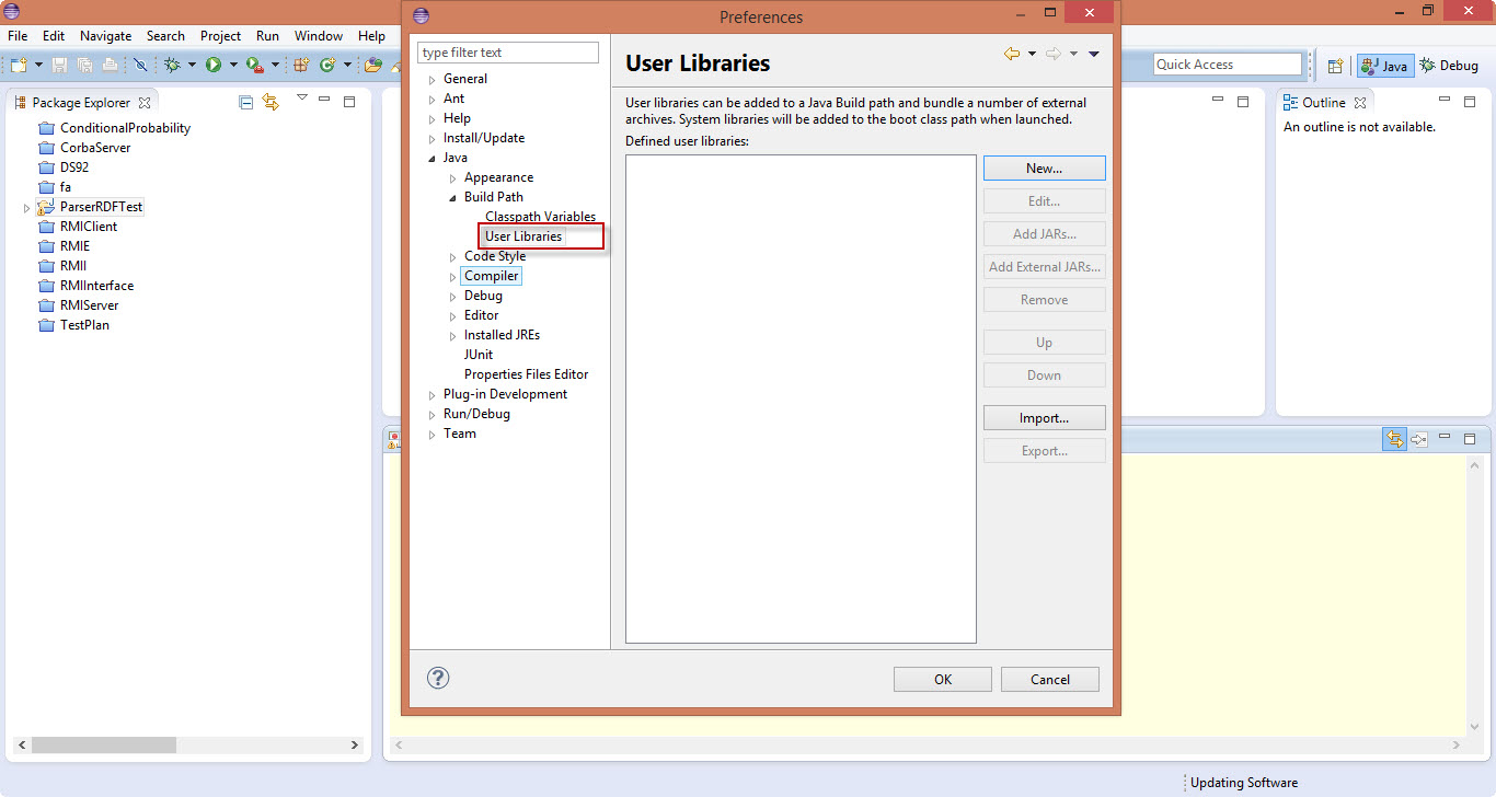 سپس از پنجره نمایش داده شده Java>User Libraries رو انتخاب کنید(مرحله 2)
