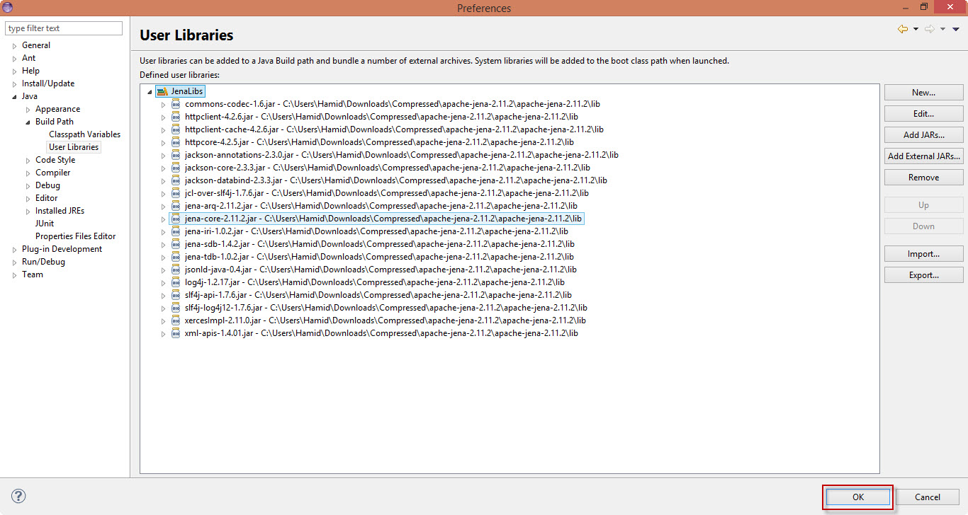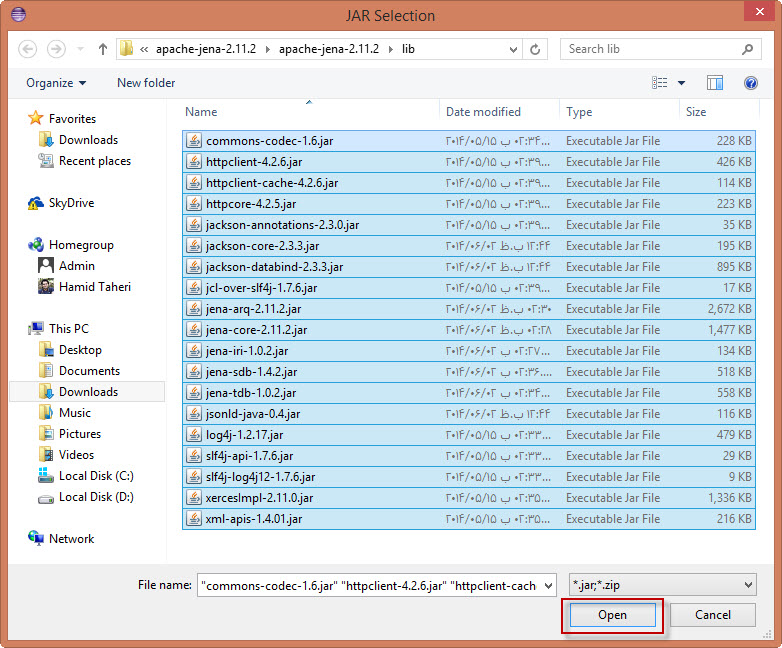 Jena یک فریم ورک متن باز (Open Source) است که به کمک ما می آید تا به راحتی بر روی فایل های RDF کار انجام دهیم. البته در کنار Jena فریم ورک های دیگری مانند Sesame و ... نیز وجود دارند اما در حال حاضر محبوب ترین آنها Jena است. کتابخانه Jena دارای دو نسخه apache-jena و jena-fuseki می باشد که اولین کتابخانه به جاوا اضافه شده و متور اسپارکل (SparQL) و ابزارهای دیگری را در اختیار ما قرار می دهد ولی نسخه دوم نسخه سروری بوده و اسپارکل زدن سمت سرور رو فراهم می سازه. در ادامه اضافه کردن این کتابخونه رو به Eclipse به شما خواهم گفت و انجام یک کد ساده :